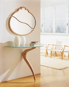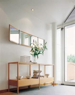 镜子:墙面上挂一面造型新颖的镜子,既可扩大视觉空间,又可在出门前整理妆容。不过,镜子与矮柜在设计上应相互呼应,还可根据需要调整角度;另外,比如别致的相架、精美的座钟、古朴的瓷器等都是不错的选择。