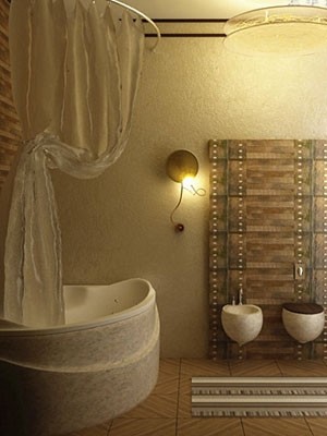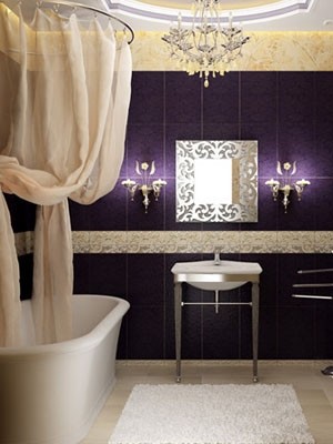 编辑点评:成熟的深紫色让浴室更显迷离。浴缸上的透明帘子更是一大亮点。经典吊灯设计总能散发出温馨舒适的光亮与色彩。