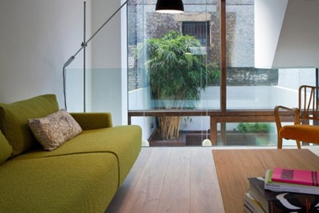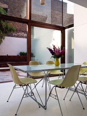 编辑点评:与室内一面相隔的是屋外的庭院,用玻璃窗隔开,是完美的采光设计。但这个玻璃窗不失单调,用木质隔成多个版块,有了窗有了门,最重要的,是有了灵动感。
