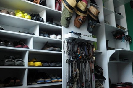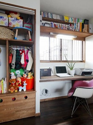 定制的嵌入式搁板收纳,有效利用墙面空间。其中搁板的使用,让分层的效果更加明显。搁板的高度设计还可根据自己的需要调节,让分类的收纳更轻松与科学。此外,我们还可设置一个门帘,不仅为了美观,还可以起到防尘防污的作用。
