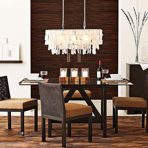搭配简约型欧式吊灯,营造浪漫晚餐气氛,让用餐更有味道。
