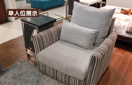 这套沙发由一组转角和一个单人位组成,造型简约,条纹和灰色的布艺搭配让这款沙发看起来既时尚又不失典雅,活泼中又具稳重,可见搭配十分讲究。