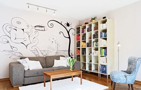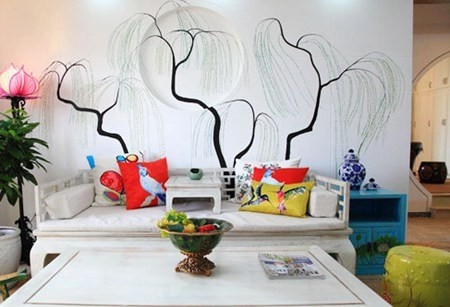 在众多的背景墙装饰方式中,很多人比较钟爱的是手绘墙,因为它相对其他设计方案来说比较自然,也非常的有艺术感。在墙面上你可以绘上任何你喜爱的想要的图案,天马行空什么都行!