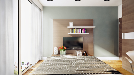 编辑点评:床头壁画装饰,墙角的窗户,还有贴墙悬挂的电视柜对应贴地的床头柜设计等,都明显提高了空间的立体感和格律美。在灯槽散光的照应下,让整体空间看起来更加温馨有品位,井井有条。