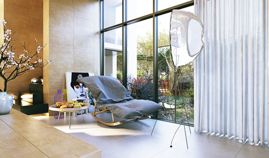 编辑点评:设计师采用摇椅设计,有柔化空间,提高空间舒适感的作用。大面积落地窗设计则有利于提高空间采光率,延展空间视觉效果的作用。