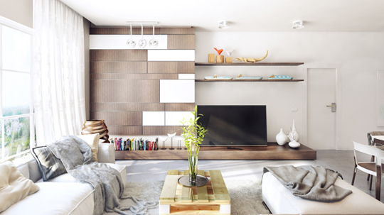 电视背景墙设计是家居设计中的关键点,其设计的成与败决定了主人给予客人的第一印象。对于小户型来说,尤其钟爱实用与美观结合的设计,收纳型电视背景墙则提供了小户型新的收纳“求生术。