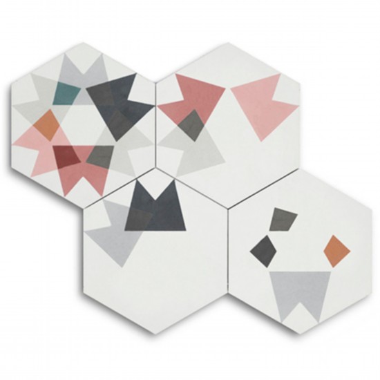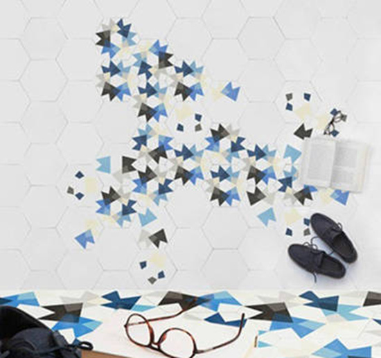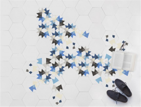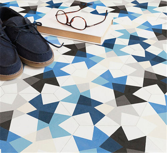 这一款名为 Keidos 的瓷砖,铺在地上的效果,就像从万花筒看到的迷幻世界一样。六边形瓷砖上印有不规则的花色,有的布满重叠的几何形状色块,有的上面只有三四片颜色,全靠自己搭配拼装。Keidos 瓷砖给予了使用者设计的灵感和实际参与拼装的可能性,让使用者自己动手、改变居住空间的环境。