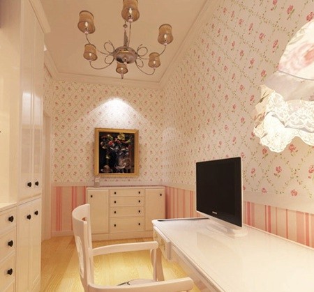 木质地板,白色家具,再配上粉嫩的颜色,怎能不爱这样的书房呢?