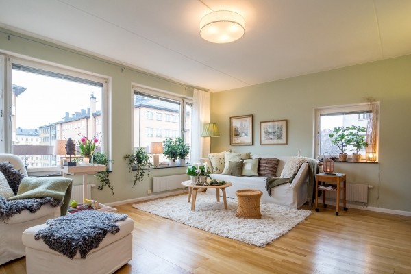 试想一下把这样的设计放到一个面积很小的客厅里,那肯定是十分拥挤了。我们再来看另一个拆掉隔墙的客厅设计。