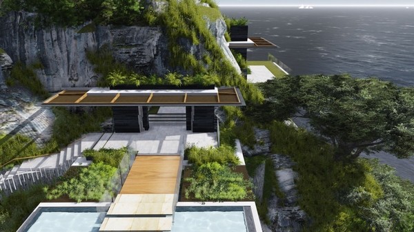 这间Martin Ferrero Architecture设计师打造的令人惊叹的住宅位于岩石峭壁之上,结构独特,仿佛另成一处世外桃源的天然胜地,住宅依山面海,在露台上可以看到苍茫大海与云层中的阳光,有人感叹,无论怎样的传奇人物都一定会爱上这样的栖居之地吧。