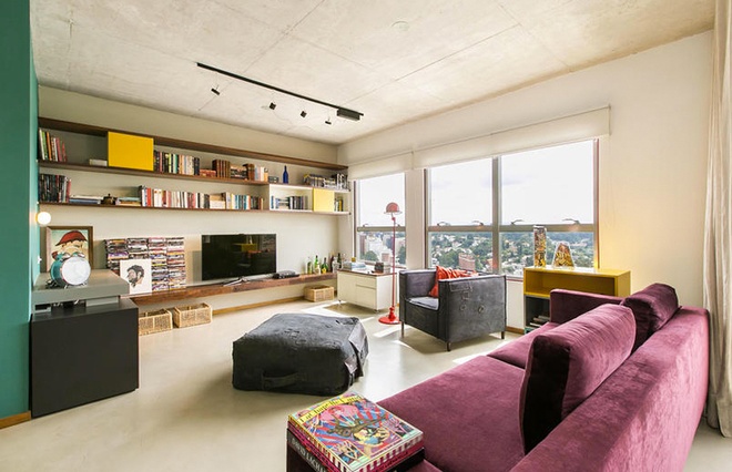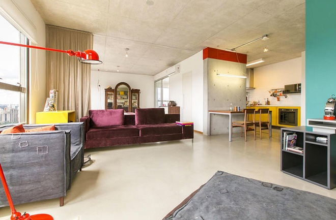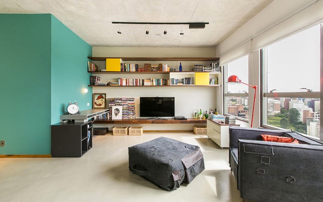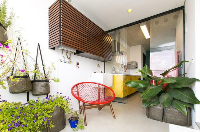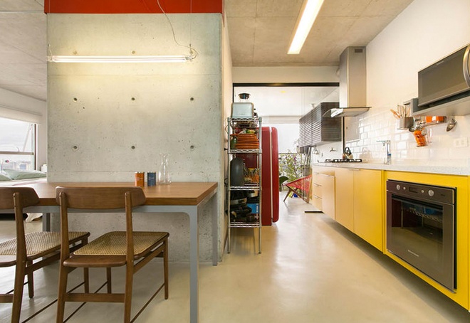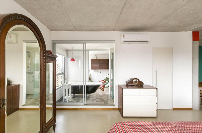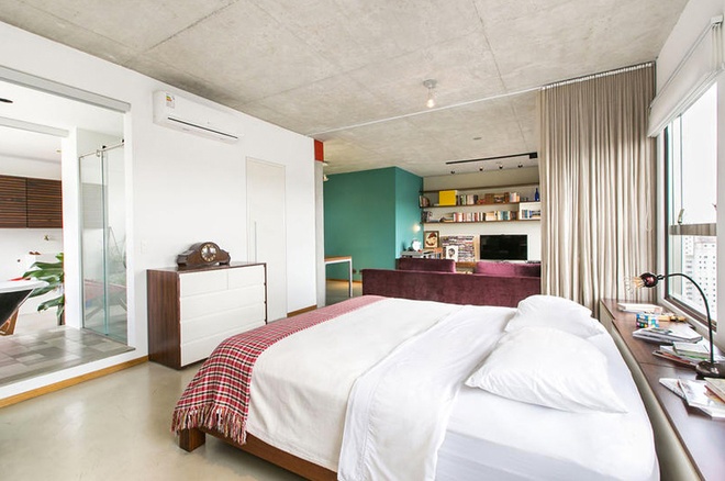 66平米的开放式公寓巧妙地去隔间化,让卧室与客厅间以布帘方式分隔,浴室采玻璃推门设计,白天时能让光线引进室内各个角落,晚上依然保有适当的隐密性。如果你家实际可用的平米数也不大,这种弹性隔间方式倒挺实用。