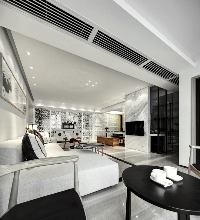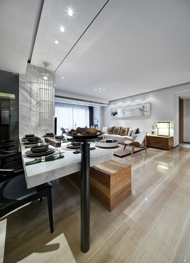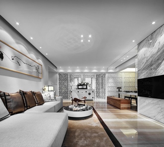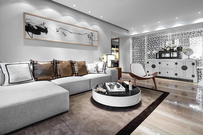 宁波装修网今日推荐案例——万达金色江南110平米现代中式风:本案室内设计风格定位为浅色调的现代中式风格。针对本案所在的楼层位置采光不足、空间过于封闭,设计师对空间重新划分,最大限度地让客厅阳台的自然光线进入到客厅、餐厅、厨房共融的空间。