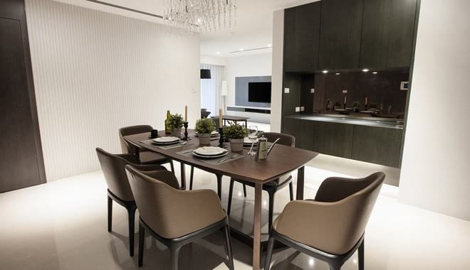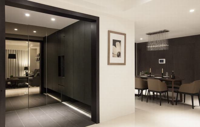 宁波装修网今日推荐案例——一品江南137平米现代简约三居室:本案以理性诉求為主轴的现代风格中,黑、灰二色衬映出沉稳基调,让垂直、水平线构成的简洁纯净,回归到最基本的生活层面思考,譬如人性化的动线与格局、贴近习惯的收纳应用等,进而让理性与稳健的设计观点,容纳最大的实用效益又兼顾空间感。
