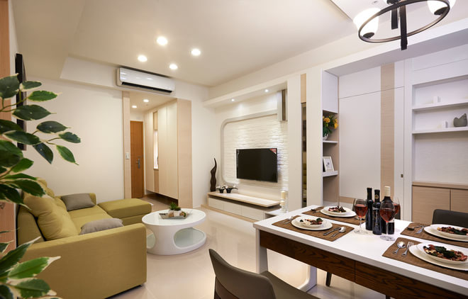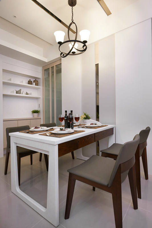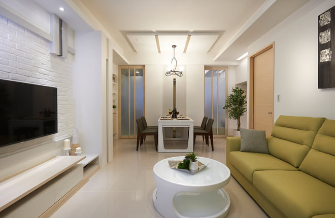 宁波装修网推荐案例:名悦公馆66平米混搭清新两居室——本案设计师发挥空间的潜能,以现代品味为设计主轴,符合年轻夫妻对质感的期待,营造风格独具又高度开放的宅邸。进入室内,公共空间以开放的角度让客厅、餐厅通体链接,引导出场域流畅与利落感,整体色系以白色为主,搭配木质柜面与橄榄绿沙发,清新自然不落俗套。