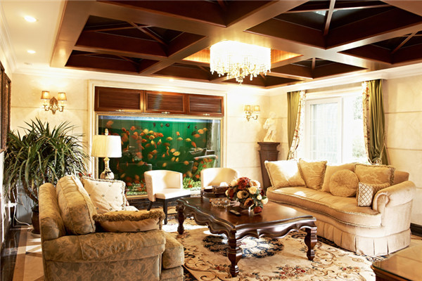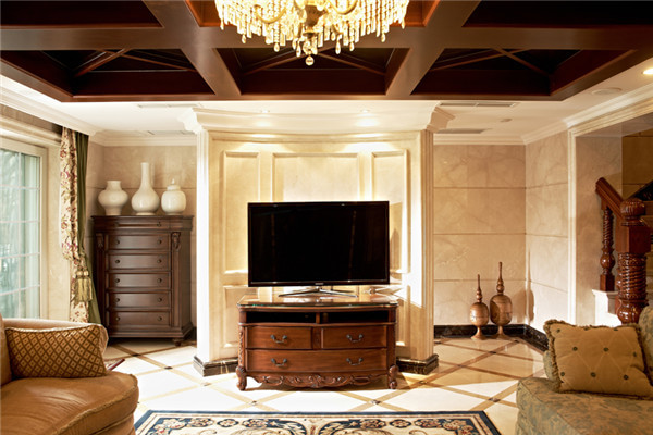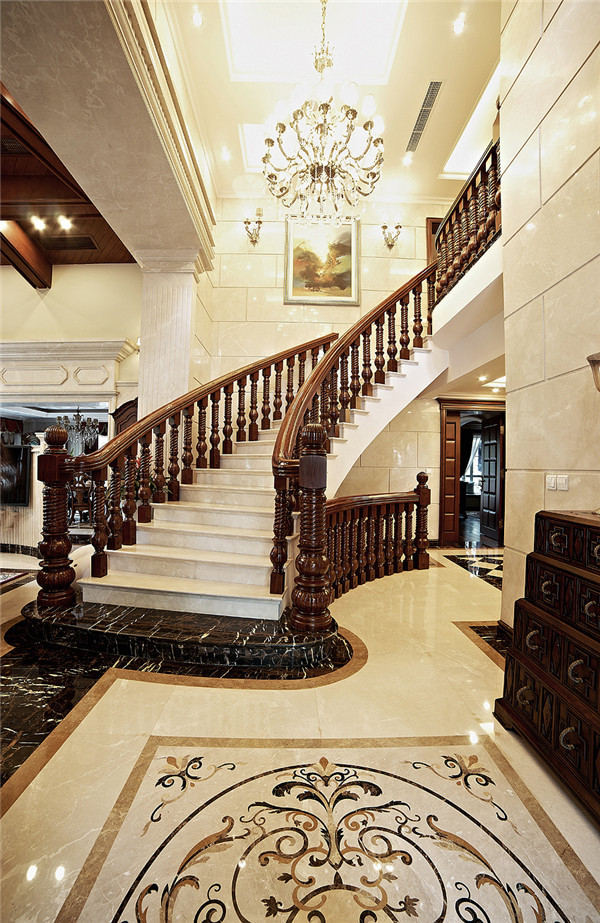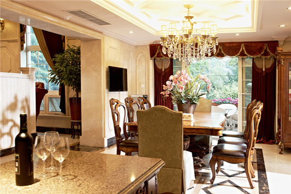 宁波装修网推荐案例:雅戈尔香颂湾400平米欧式经典别墅——设计师希望在本案的设计中体现一种不同于一般欧洲装饰的风格,以一种时尚的形体和元素来完成一个具有自己个性的生活空间,红色在整个公共区域中作为点缀,体现业主年轻的心态和活力的一面,对细节的把握使整个空间富有动感又不失精致!石材的大量使用使空间更显大气和尊贵,同时石材也有很多细节的处理。对每个家庭成员的尊重也体现在设计中,老人家的房间会有独立的休息区及露台,而每个房间均设有独立卫生间……