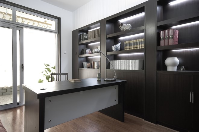 宁波装修网今日推荐案例:海景华庭136平米黑白灰简约三居——本案在室内装饰上,设计师选择了以适合现代人生活的简洁手法,只在适当的地方采用了中式传统漏花窗来加以装饰,以增强室内整体氛围:黑白分明的调子、通敞宽亮的空间、点到为止的摆设、尽量简化的各种造型形式,其实这并不仅仅在演绎现代中式设计理念,更重要的是有意识的在家居空间里留出一定的空白——留给居住主人自主地填补生活的空间。