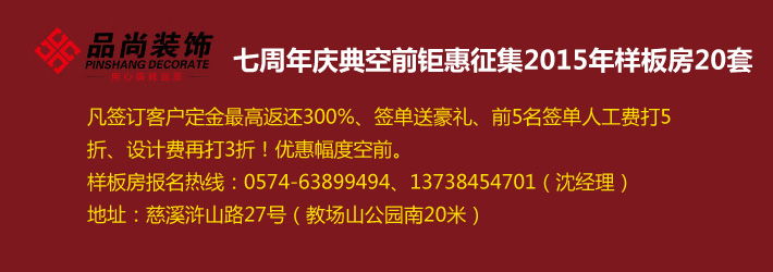 慈溪品尚装饰设计工程有限公司是一家集室内设计、预算、施工、材料于一体的专业化装饰公司。公司从事装饰装修行业多年,有着创新的设计、合理的报价,还有一批专业化的施工队伍,确保施工绿色环保,安全文明。公司自创业以来一直秉承着“大公司,小家装”的理念,这个理念不断推动着装饰行业经济的良性和健康发展,树立起行业领军者的表率形象。2010年公司在宁波地区首次引入精品团装的装修概念并取得了极大的成功,至今一直是慈溪团装的引领者。公司凭借创新的设计构思、合理的预算报价、精良的施工工艺,优质的全程服务,真诚的为每一位顾客,量身定制全新、优雅、舒适的居家生活、文化空间。自公司成立以来,全体员工一直秉承“以质量求生存,以信誉求发展”的经营理念,始终坚持以客户的需求和满意为核心,以诚信为宗旨,不断的用优质、精美、具有创造力的空间装饰产品为客户提供更大的价值回报,更完美的生活居家环境。公司经营室内装饰行业多年,积累
