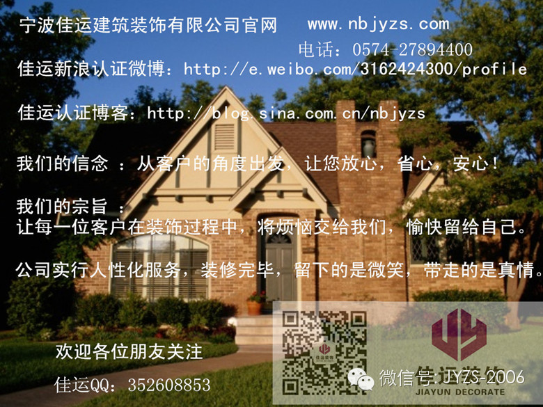 宁波市佳运建筑装饰有限公司是一家专业从事中高档室内装饰设计、施工的企业,专精别墅、复式、公寓和办公室及商业空间。