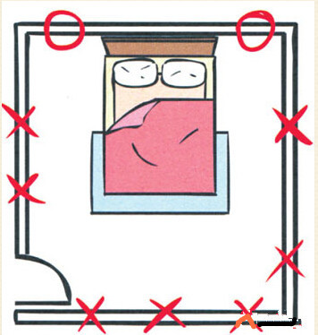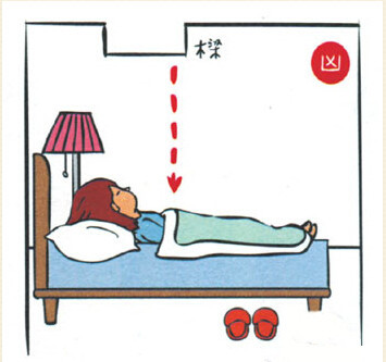 有些人为营造气氛而将床斜放且不靠墙,或为了闪避横梁而将床头悬空。床头不靠实墙,或调头睡,会造成睡眠品质不良、思想叛逆、怪异及与人沟通能力不良。