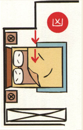 横梁是建筑物主体结构之一,主要由钢筋混凝土组成,当指南针放在梁下,指针立刻会改变方向,这可证实横梁会产生明显的物理磁感应作用。由此可知,睡在横梁下,人体的微电系统(尤其是大脑、心脏)会直接受到负面影响,造成睡眠不足、头痛等现象。建议在梁下放矮柜,或干脆作整面包梁立顶柜来避开。