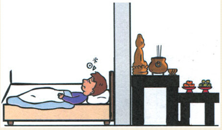 只有小庙的庙公才会睡在神像的后面或神桌下面。一般人即不是庙公,也不是灵媒,千万不可如此睡。