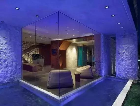 大楼里有一个60英尺深的超大游泳池,游泳池和外面的阳台是联通的。更衣室里有四个淋浴间和两个浴室。